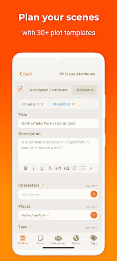 Can’t remember the name of the diner in Chapter 3 — or where the diner is? Don’t waste time combing through old notes and index cards. Track your characters and places with Plottr.