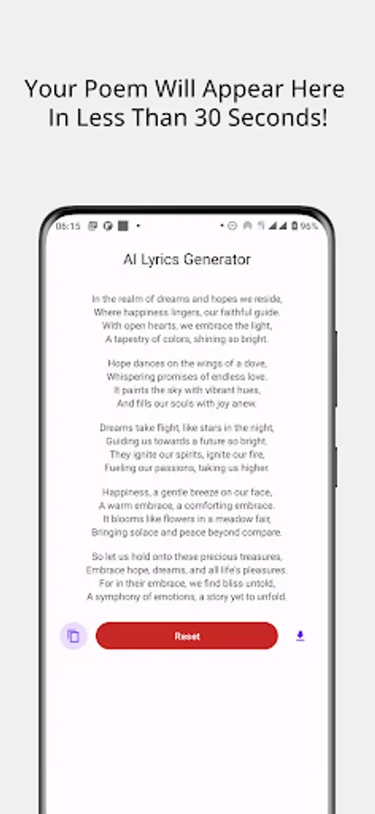 ✅ Download and save the generated lyrics or poem to your device to read it later
