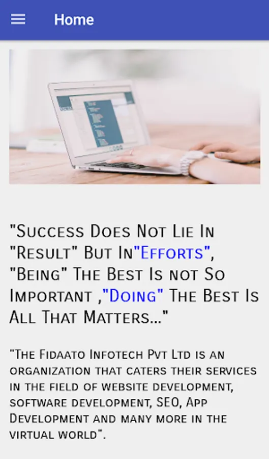 The Fidaato Infotech Pvt Ltd is an organization that caters their services in the field of website development, software development, SEO, App Development and some more in the virtual world.