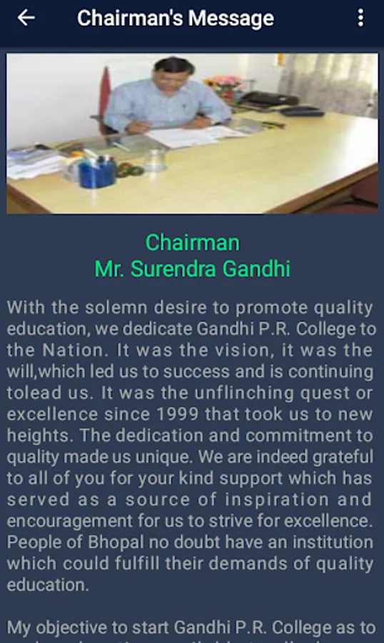 he Gandhi P.R. College proposes to undertake the cause of education as a mission in community service. It is inspired and guided by outstanding personalities and educationists of high repute who are devoted and dedicated to provide value oriented education. Our mission is, to prepare students to become self reliant, productive individuals with clarity, precision and independence, to inspire students to embrace challenge to find joy and self-worth through achievement.Gandhi P.R. College is an institution dedicated to impart quality education. Our aim is to make the students excellent performers with utmost self-confidence and practical wisdom, so as to be successful in whatever field of activates they get involved after education.