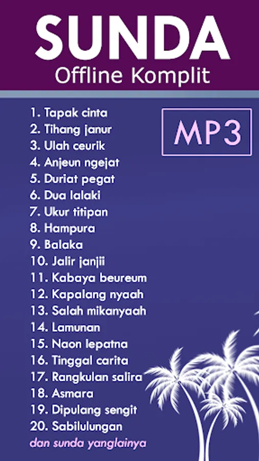The origin of the Sundanese tribe is a great honor for us. This complete offline Sundanese song application presents mp3 music of the ancestors of the Sundanese tribe which is known to be very polite. For those of you who like soft sounds, you can listen to complete Sundanese songs here.