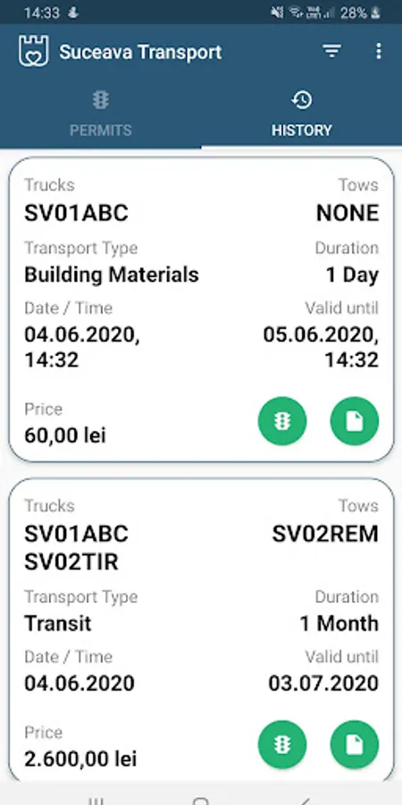 Also, in the app's history you can view and download the Special Transport Authorization at any time.