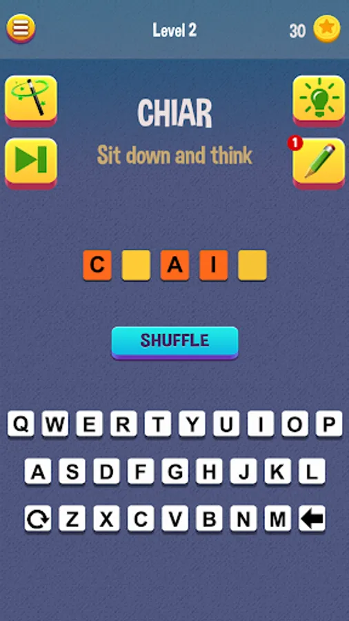 Mumbo Jumbo is a word puzzle game based on Anagrams, that gives you a group of scrambled letters and requires you to unscramble them to make a real word. For example, if you were given the letters "c-o-m-t-e-r-u-p" you could unscramble, or un-jumble if you will, those letters to reveal the word computer.