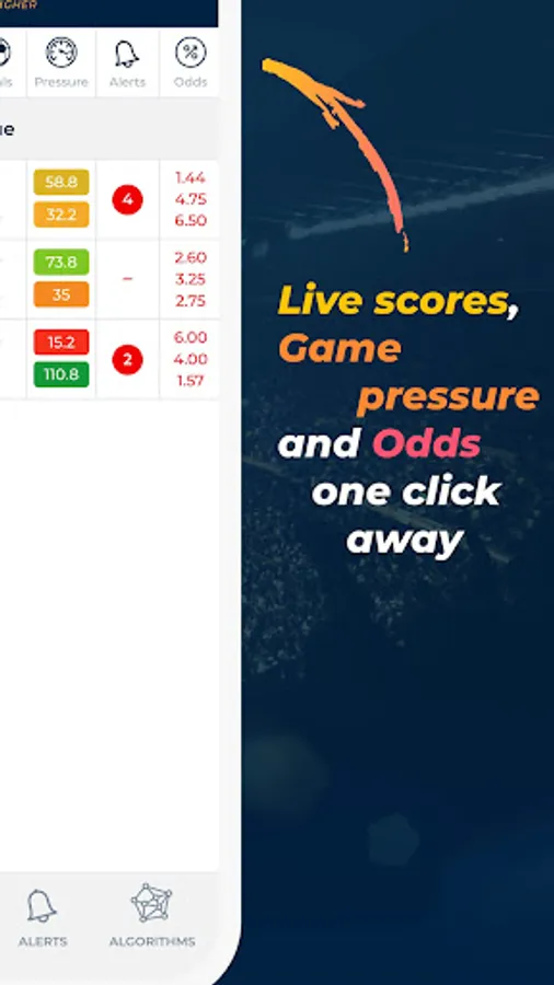 Algorithm Alerts - Our team joined forces and produces several artificial intelligence (A.I.) backed system algorithms to alert you whenever a goal is soon to be scored. Or how many corners will potentially occur in the game. We even tell you if a team can win or not the match. This is especially interesting information for those of you who are interested in football betting.