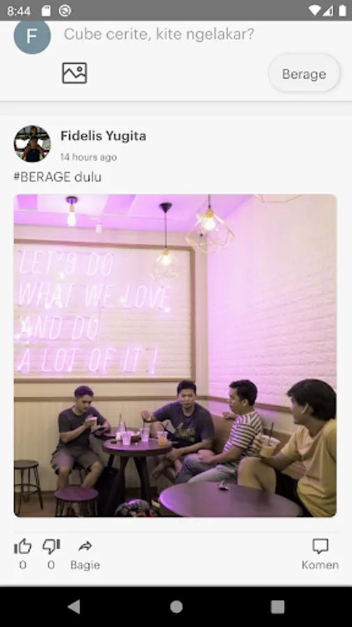 Besides making it easier for you to find hangouts and hangout friends, Berage can also be your existing media to update status and photos and like posts with fellow slang people, you know!