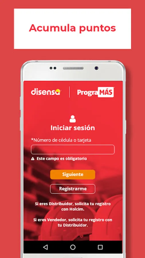 Loyalty application of PrograMÁS of the brand Holcim-Disensa; where you can earn points to redeem for incredible products, check promotions, find out what's new, get general information about the program and manage your account