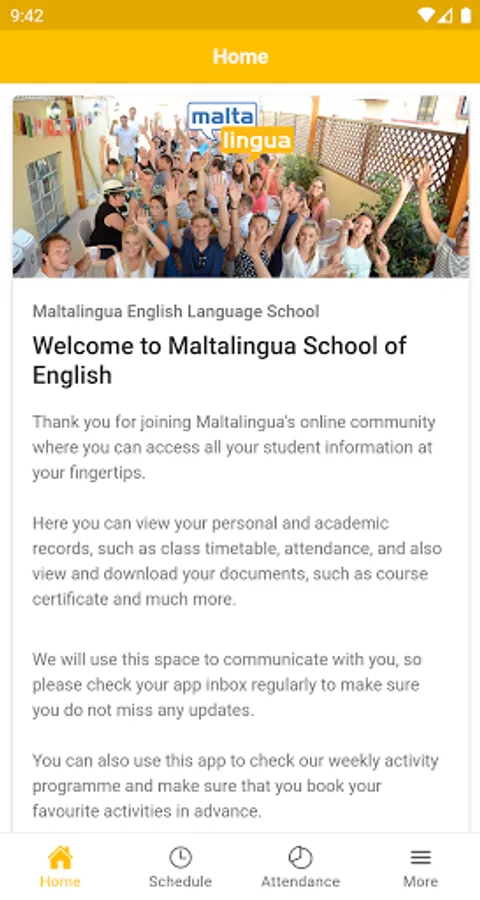 Connect with our community of teachers, students and staff with the Maltalingua app and ensure that you have the latest updates about your course at your fingertips!