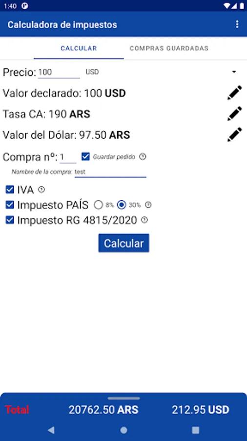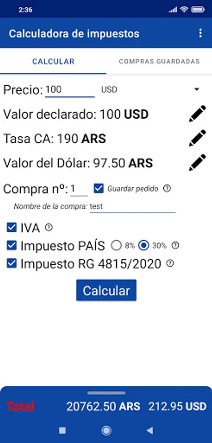 This application is a quick tool that allows you to get the final amount to pay when purchasing any product and importing it to Argentina, taking into account all the applicable taxes.