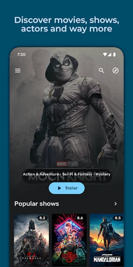 • Explore huge amount of categories for movies, TV shows and persons: popular, upcoming, in theatres, top rated, airing today, airing this week and way more