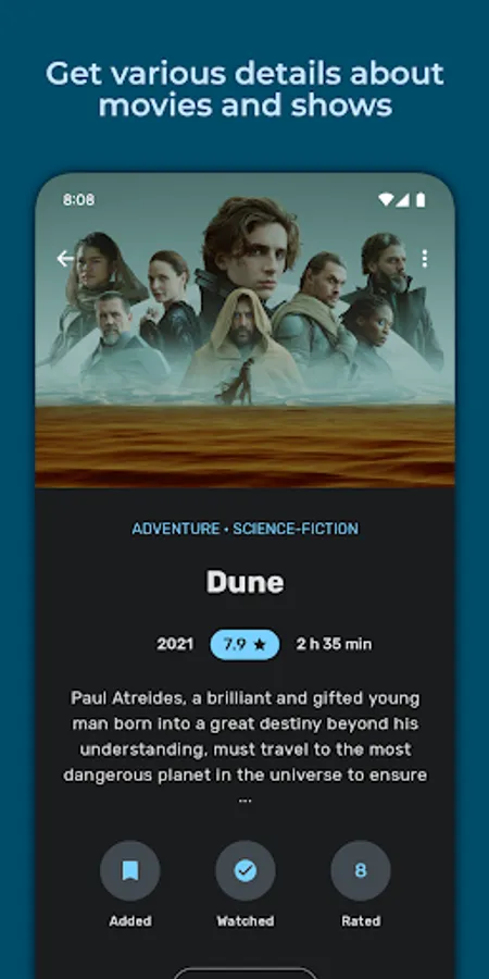 • Synchronize your data with Trakt to save your lists, get personalized recommendations and find your data on all your devices