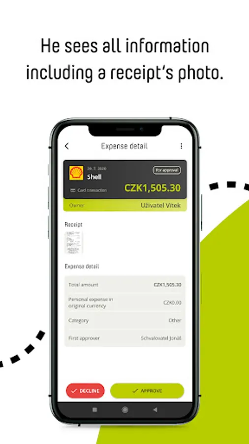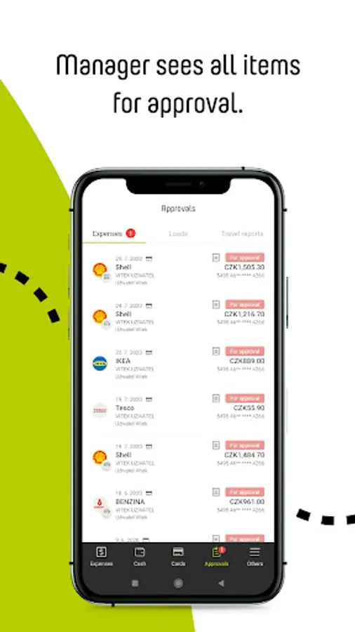 The manager not only gets the same efficient tool for working with expenses, but also sees expenses and travel reports for approval in one place and approves or rejects them directly on the mobile phone after checking them.