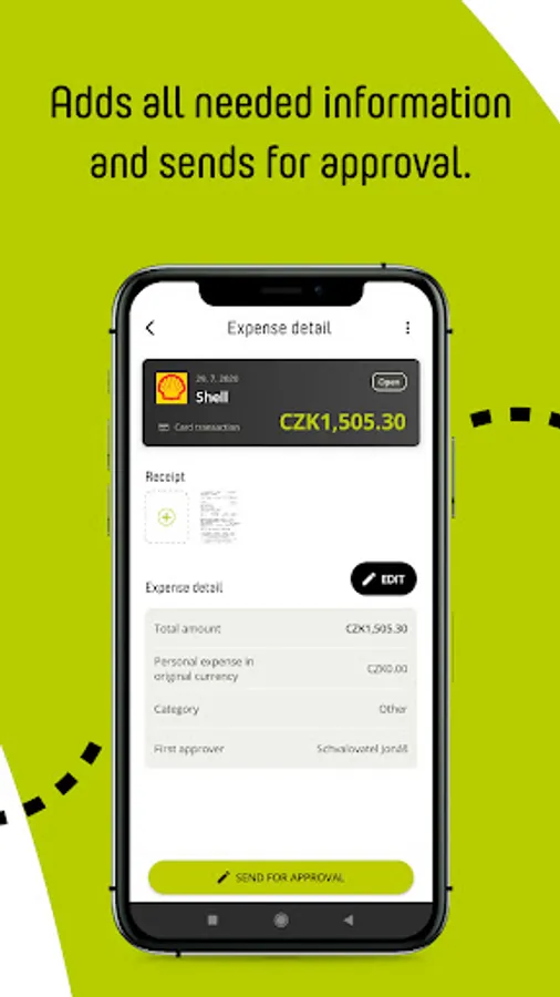 With the mobile app, the employee gets a solution where, after paying with the card, he or she immediately sees the expense, takes a picture of the just-printed receipt (which can then be discarded), adds the necessary data and sends the expense for approval.