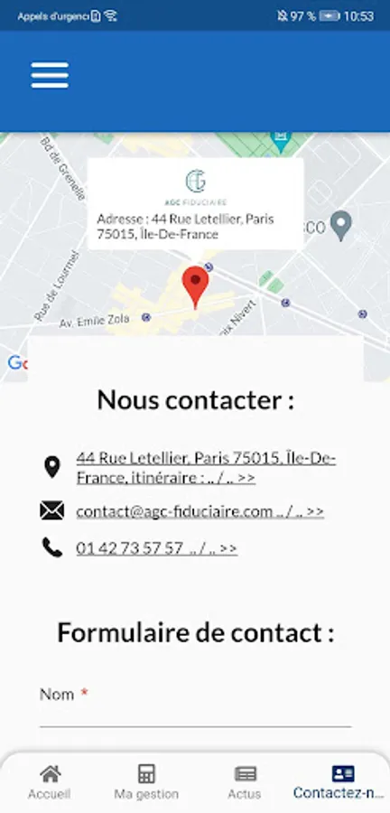 Cabinet AGC Fiduciaire is an accounting firm based in Paris 15th (75), in the Île-de-France region.