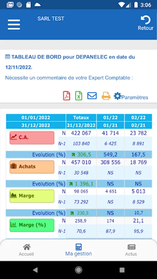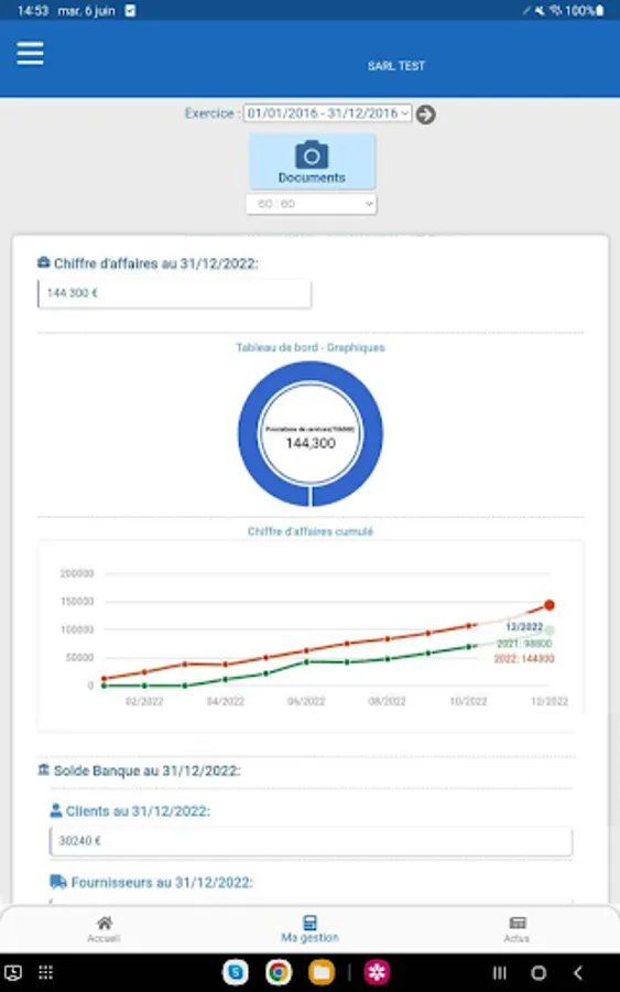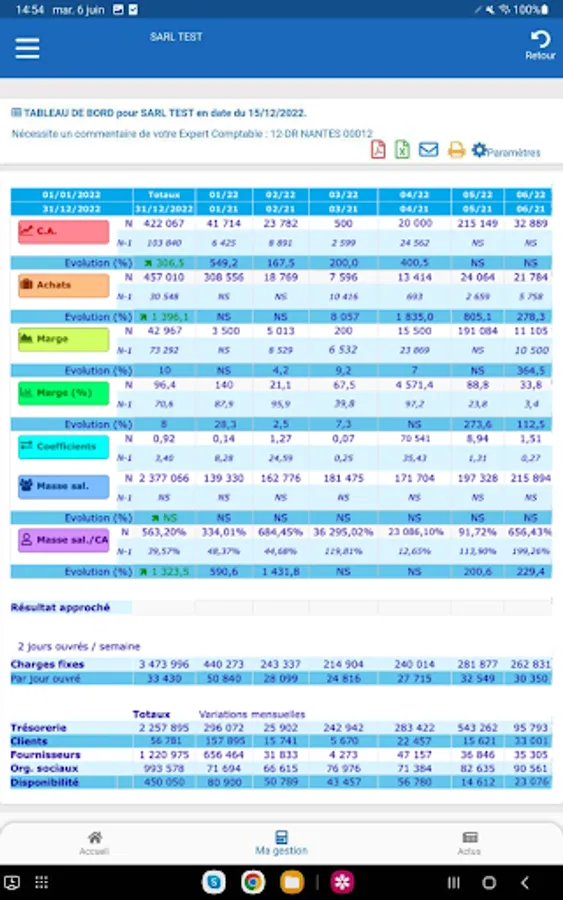 Fidweb allows you to simply consult the situation of your company with clear dashboards: turnover, cash, payroll, customer accounts and