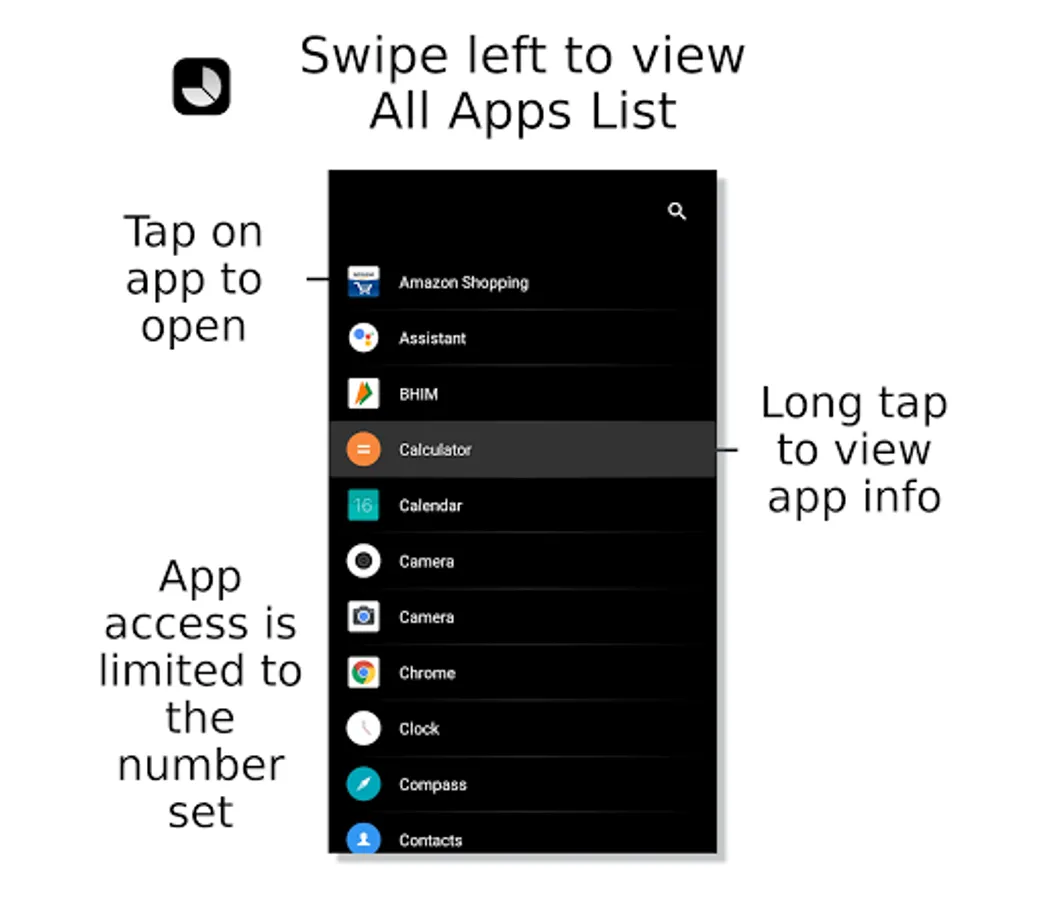 Other apps can be swiping left from home-screen.Access is limited to the daily limit set.