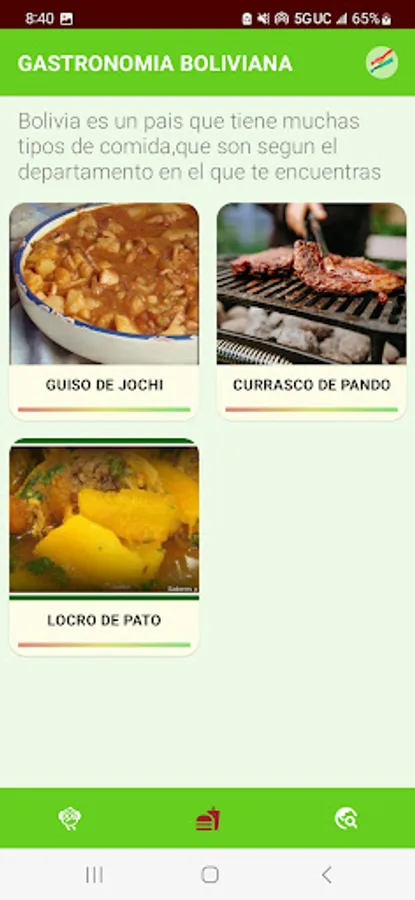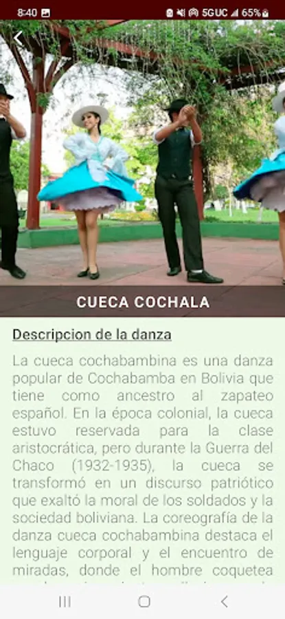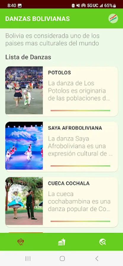 Se muestra información de Bolivia como ser sus danzas, gastronomía y lugares turísticos
