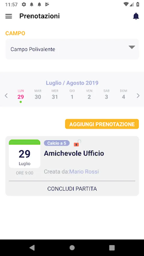 Simple and functional, it allows the user to view your fields on the map and book them with a click, seeing in real time the availability, the times and all the related info.