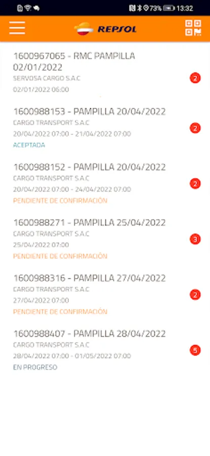 Application that allows Repsol Peru carriers to provide visibility on the status of the routes. Through this application traffic managers and customers will be able to have accurate information on the status of deliveries online