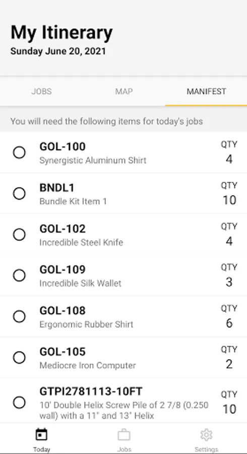 The GoliathTech Fielder app allows field technicians to easily view the jobs they have for the current day, view the list of materials they'll need to service those jobs, get some basic information about the jobs, view their jobs on a map and get directions, and facilitates communication with the customer.