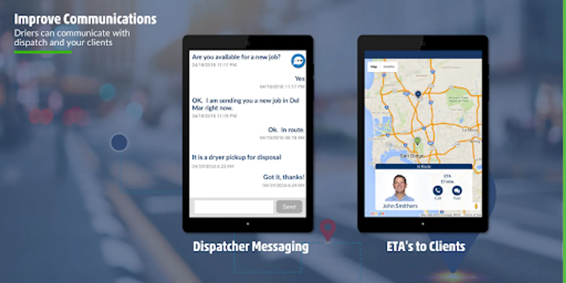 Goose helps organizations better plan their mobile workforce's day. The field worker clocks in, completes the jobs and sends status updates to the dispatchers. The worker also sends ETA's to their clients to notify them of their estimated arrival times.