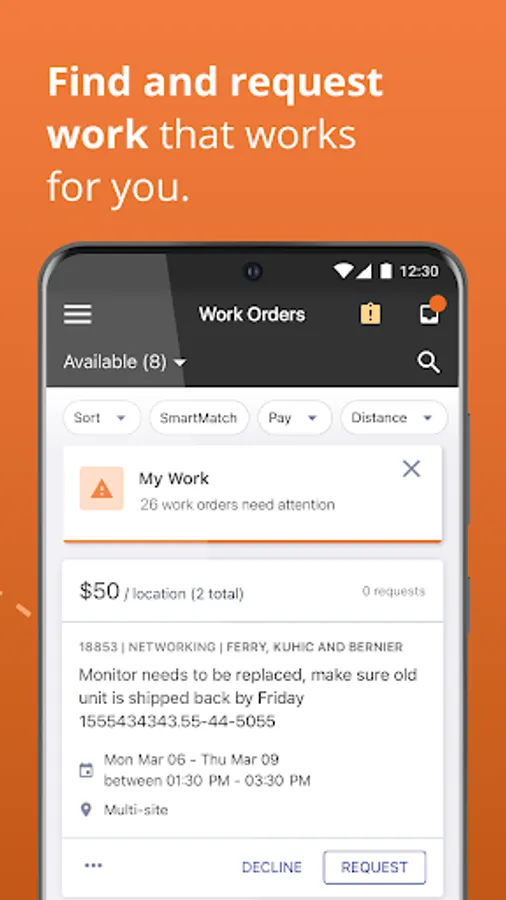 Find on-site IT work that matches your skills. Tackle jobs with an Android app designed for technicians. Get paid without the hassle of invoices. Leave the administrative work to us.