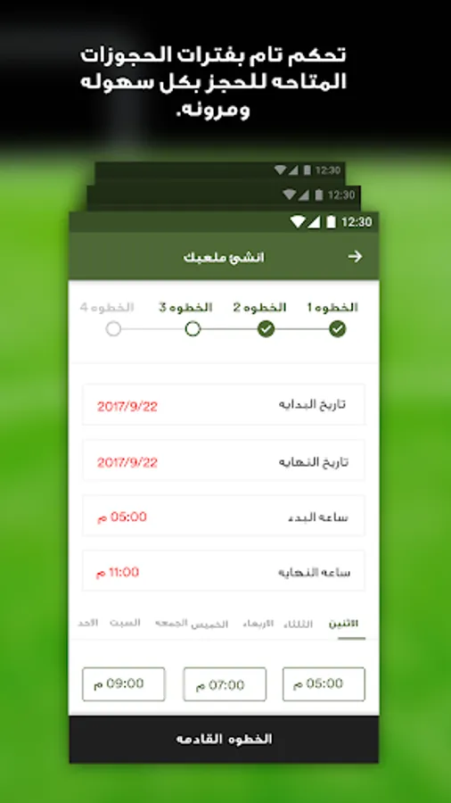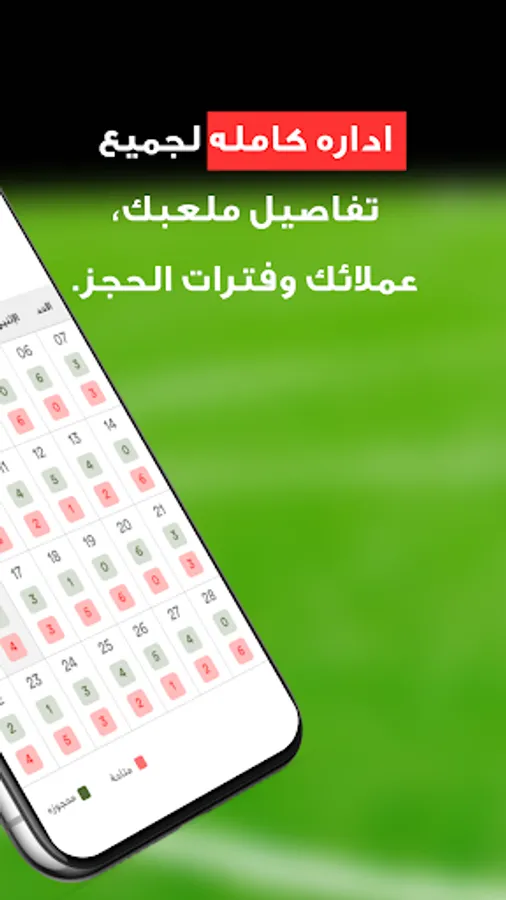 اداره كامله لجميع تفاصيل ملعبك، عملائك وفترات الحجز.