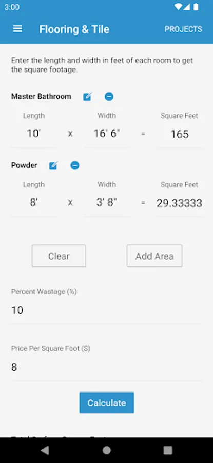 Designed for contractors of all types, ContractorCalculator is the easiest way to calculate and save important calculations while in the field. Handle on-the-go calculations like square footage, measurement conversions, and fraction math to trade specific calculations like amps to watts, drywall footage, roof footage, and wire size calculations. Once calculated, simply save them to projects to retrieve at anytime.