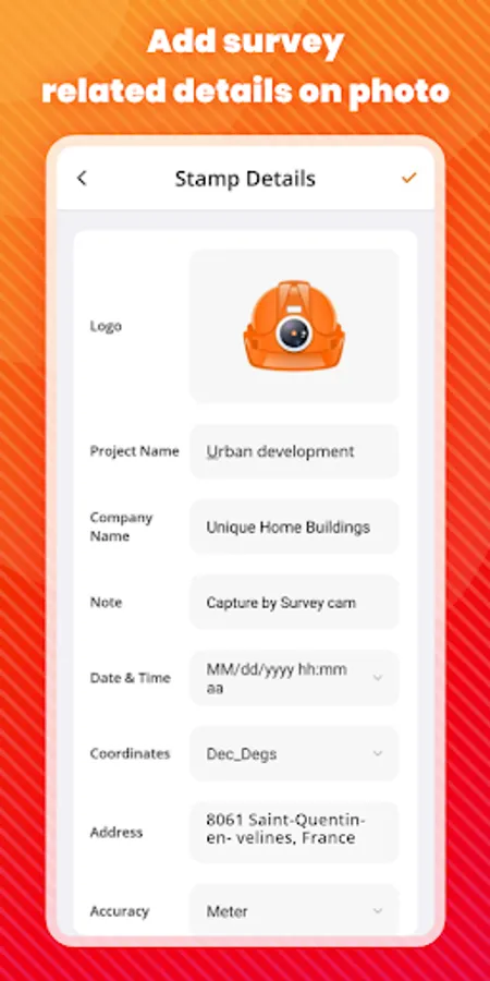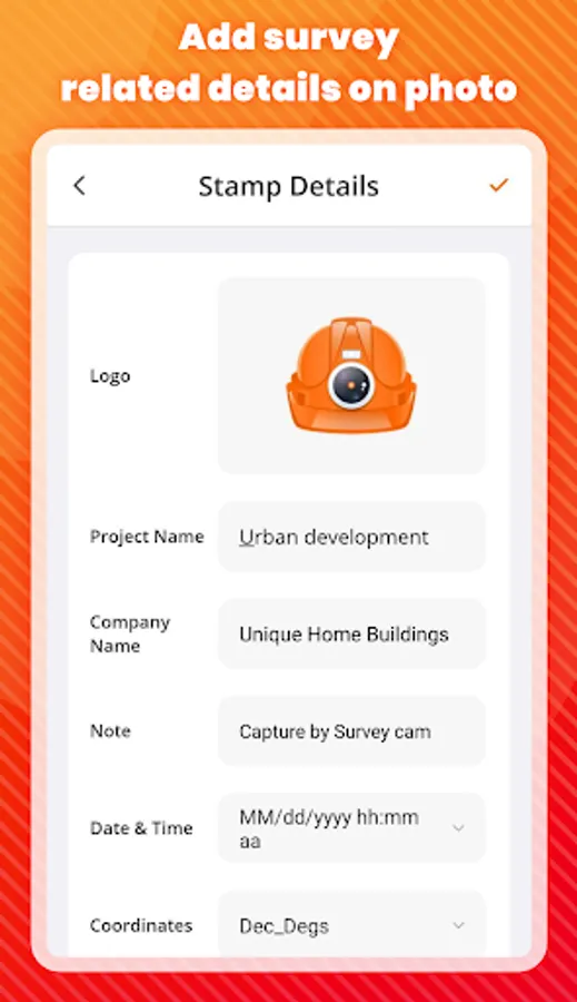Embed survey particulars as informative stamps directly onto your photos with Geotag survey timestamp camera.