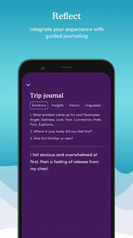 - Journaling prompts, check-ins, and reminders for integrating the psychedelic experience