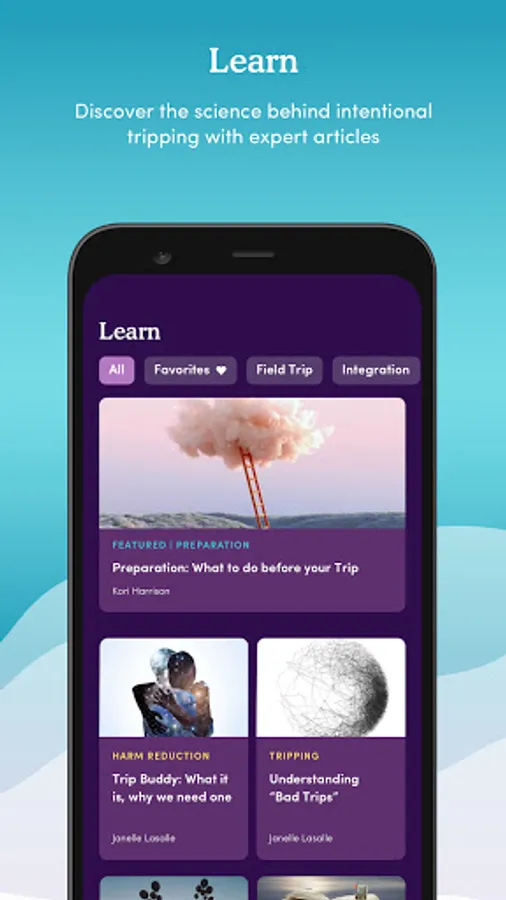 A psychedelic guide in the palm of your hand, the Field Trip app helps you explore the psychedelic space and assists you in the preparation, exploration, and integration phases of your journey. Expand your practice through guided psychedelic programs in the app and in Field Trip clinics. Our app offers an immersive, connective, supportive, educational, and curated experience to help you on your psychedelic journey.