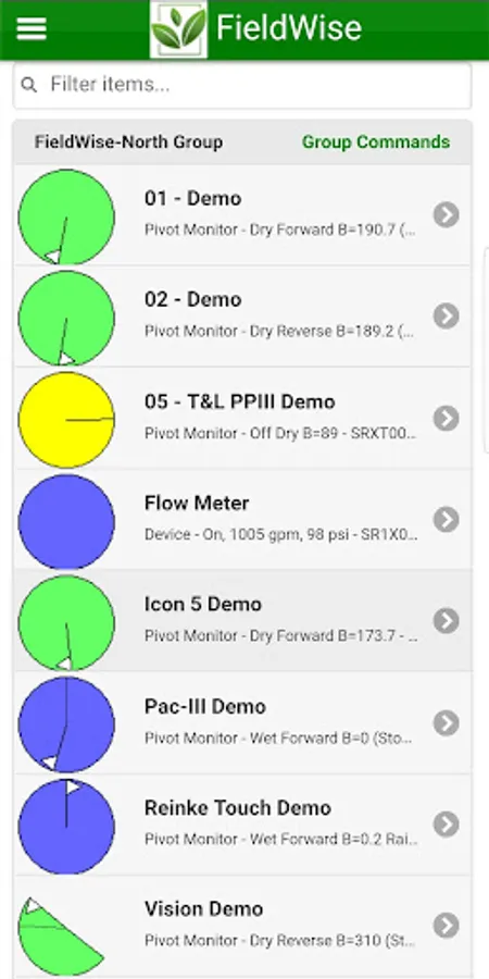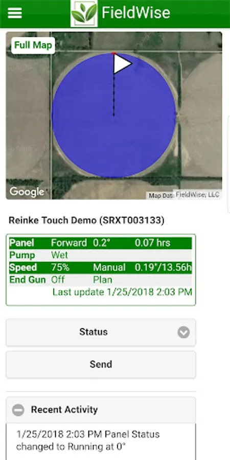FieldWise provides easy-to-use controls for center pivots, moisture probe readers, and other sensors used in farming operations. The FieldWise app provides access to your FieldWise equipment on your mobile device.