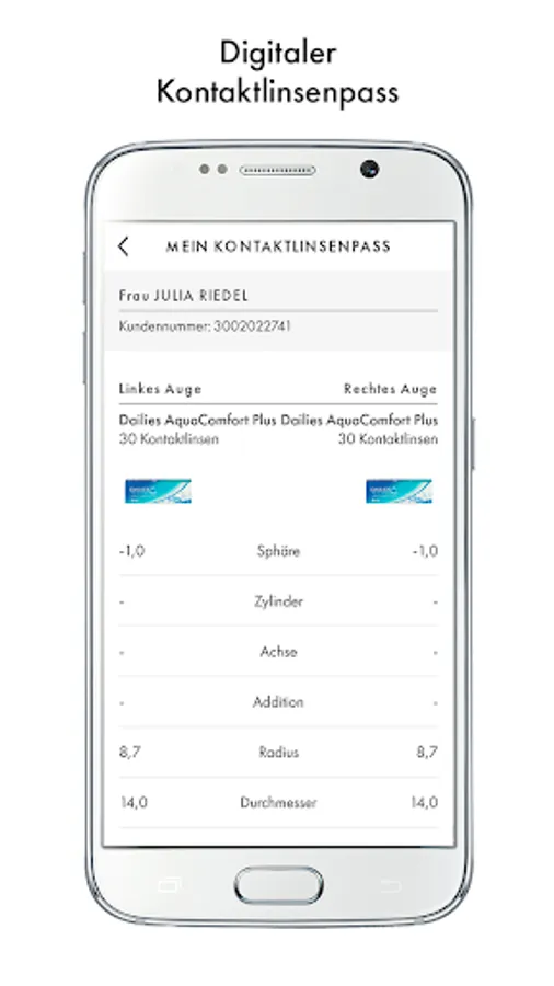 With your digital contact lens pass you have all the important information at hand about your contact lenses.