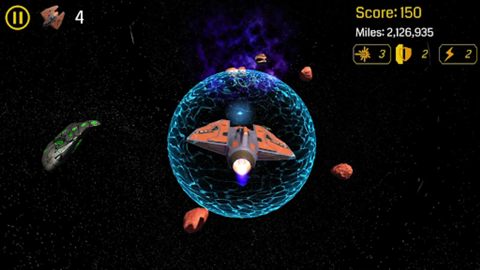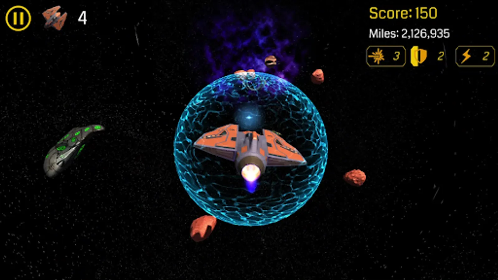 This amazing star fighting game has very exciting game play, amazing space environments with great sounds, and a great user interface to let the fighters have wonderful experience. You can select the space scene, and your spaceship from several options. The controls are super handy and easy to use (motion sensors or swiping on the screen) to navigate your jet fighter spaceship.