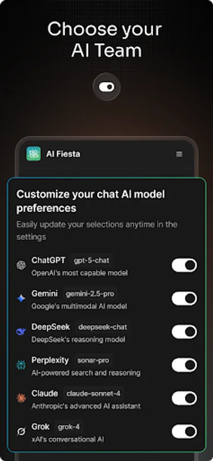 Customize your AI Dream Team: Select all, or choose specific expert AIs to answer, then view their replies side by side to find the best solution for every problem.