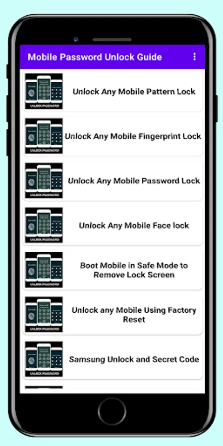 Mobile Password Unlock Guide From this app you can learn How to do Unlock Any Phone Forgotten Pattern or PIN. How to Unlock Phone Password Without Factory Reset? Secret codes for all Mobile.