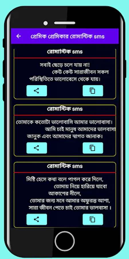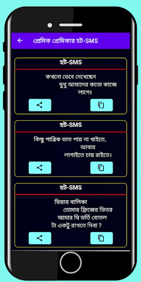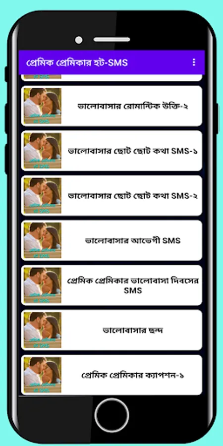 প্রেমিক প্রেমিকার হট - SMS অ্যাপসটি থেকে পাবেন রোমান্টিক সকল ধরনের এস এম এস। ভালোবাসার রোমান্টিক কথা উক্তি । প্রেমিকাকে খুশি করার সকল ধরনে ছোট বড় মজার এসএমএস। আশা করি অ্যাপসটি আপনাদের ভালো লাগবে।