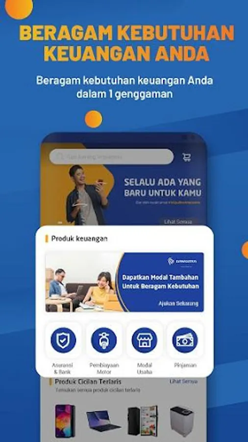 You can buy various goods to meet your needs, starting from Smartphones, Smartwatches, Laptops, Cameras, TVs, Washing Machines, AC, Refrigerators, Furniture and many others. With a fast, easy and safe application process, you can have your dream item right now.