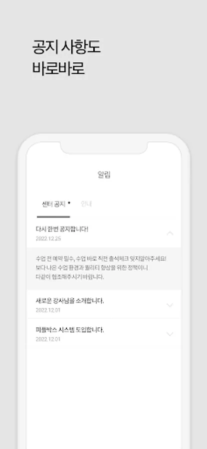 - Free automatic push notifications (membership expiration, announcements, class reminders, holding, waiting)