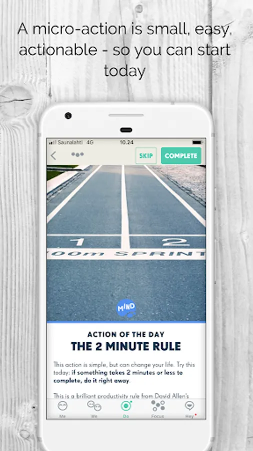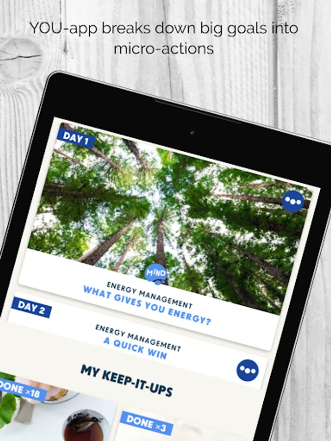 YOU-app condenses top health & personal development knowledge into micro-actions. So you can give us only a minute of your day, and still feel energized and refreshed for doing something for yourself.