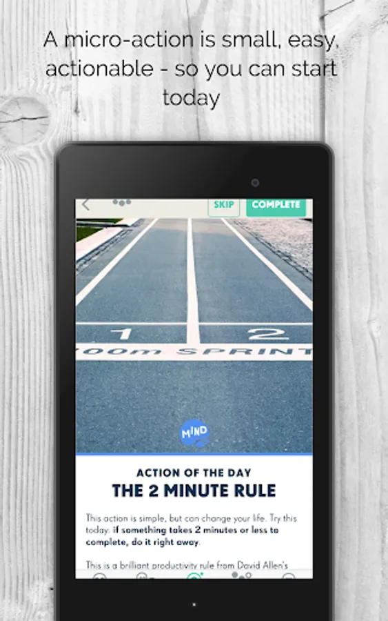 Knowledge condensed into powerful micro-actions you can read in less than a minute, do in less than ten. Baby steps, baby!