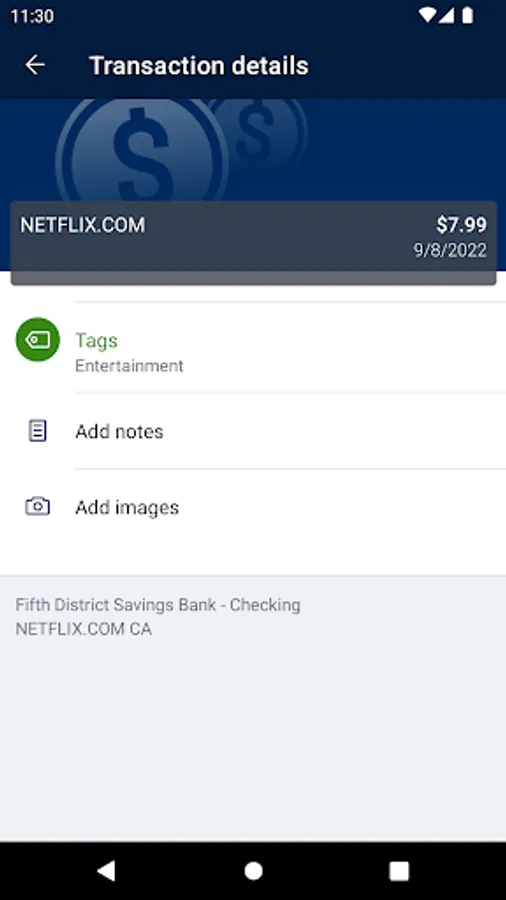 - Keep your transactions organized by allowing you to add tags, notes and photos of receipts and checks.