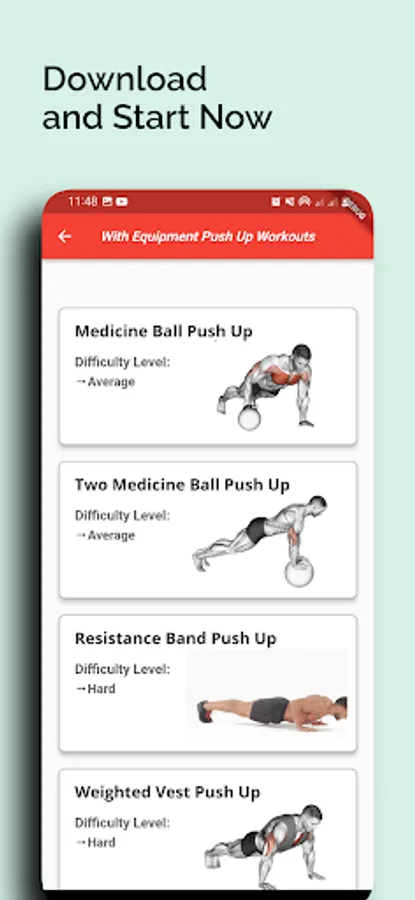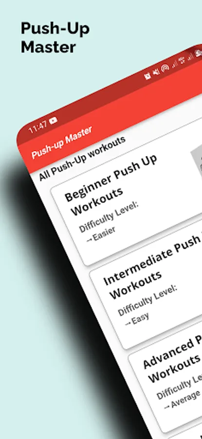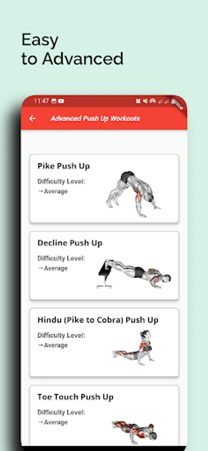 Push-Up master App contains the following Push ups types sorted from Beginner to Advanced