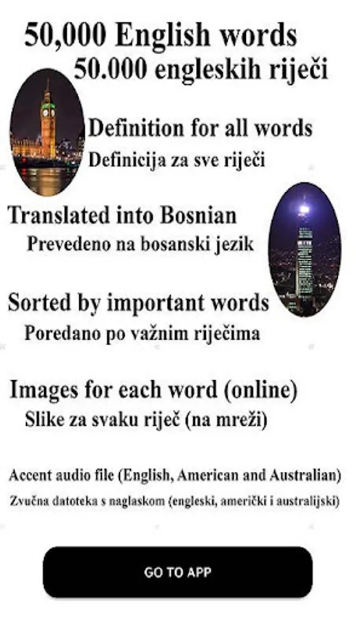 50.000 engleskih riječi je poseban rječnik sa slikama, definicijama za svaku riječ i sa američkim, australijskim, britanskim izgovorom