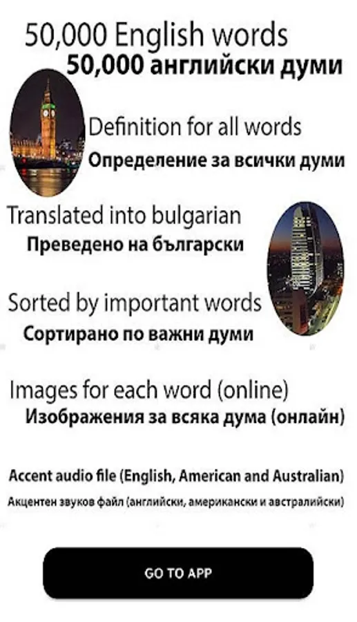50,000 English words is a special Dictionary with pictures, definition for each word and with American , Australian , British pronunciation