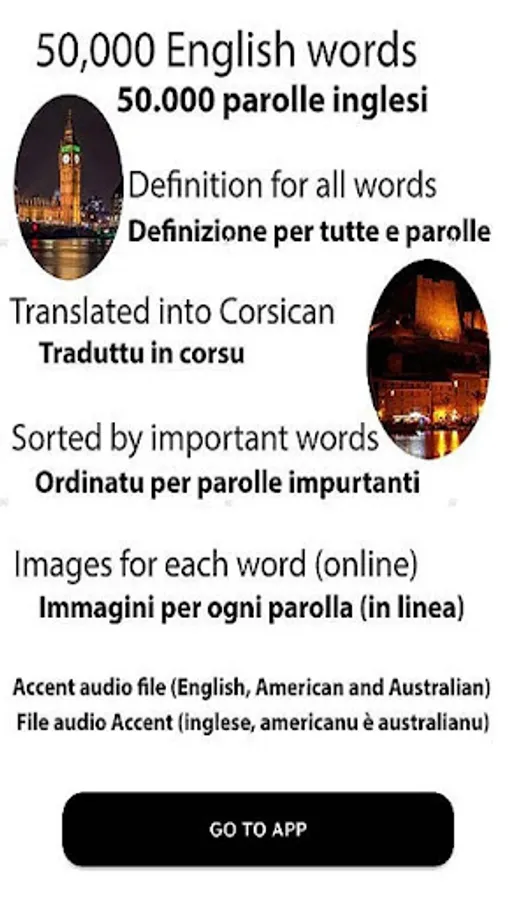 50,000 English words is a special Dictionary with pictures, definition for each word and with American , Australian , British pronunciation