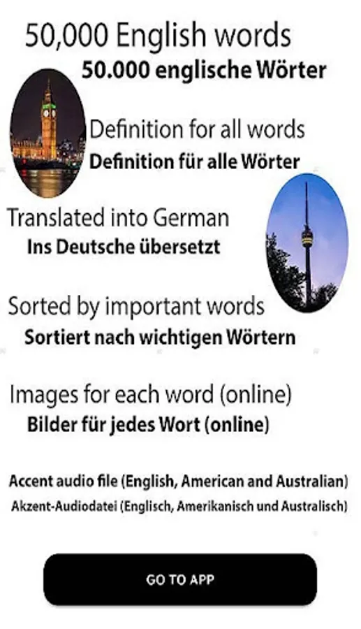 50,000 English words is a special Dictionary with pictures, definition for each word and with American , Australian , British pronunciation