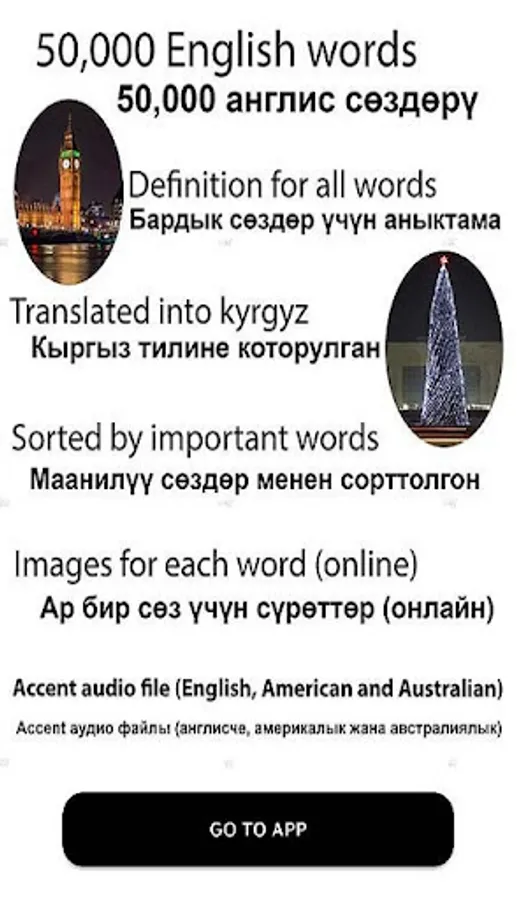 50,000 English words is a special Dictionary with pictures, definition for each word and with American , Australian , British pronunciation