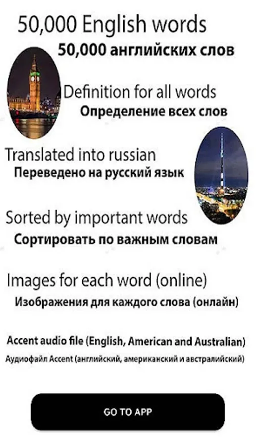50 000 английских слов - это специальный словарь с картинками, определениями для каждого слова и американским, австралийским, британским произношением.