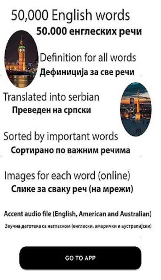 50.000 енглеских речи је посебан речник са сликама, дефиницијом за сваку реч и са америчким, аустралијским, британским изговором