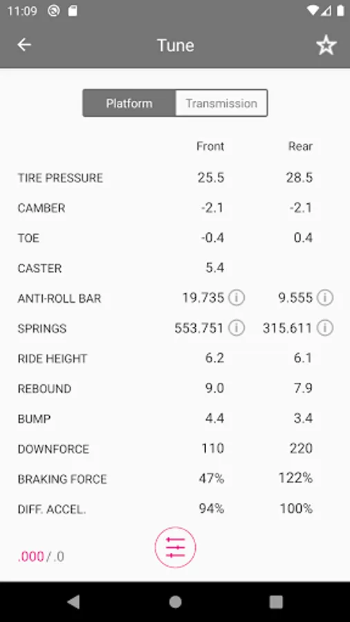 Based on the provided data a tune is calculated for the car and selected tune type. ARBs and spring rates are provided with 3 fraction digit precision, set the in-game values to nearest value.